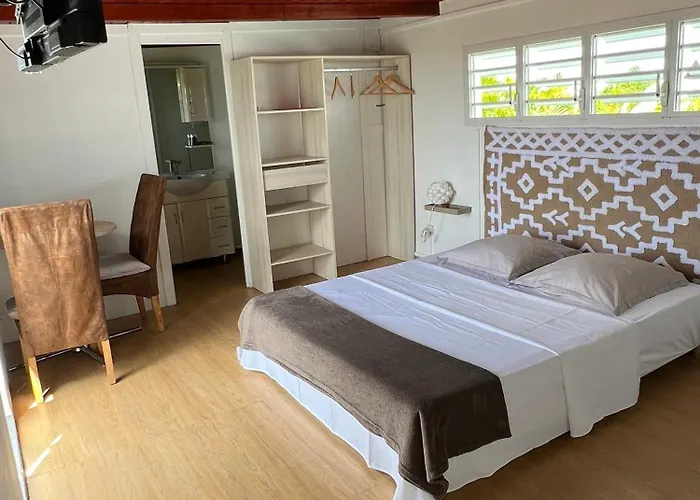Nid Kreyol est un établissement accueillant à Sainte-Anne, situé à 2 km de la Plage de Sainte-Anne. Cet hébergement climatisé comprend des commodités modernes, telles qu'une connexion Wi-Fi gratuite, une télévision à écran plat, et une cuisine entièrement équipée. Profitez d'une piscine extérieure et de la possibilité de pratiquer des sports nautiques à proximité. La capacité d'hébergement varie, offrant un espace idéal pour des familles ou des groupes. L'aéroport de Guadeloupe Pointe-à-Pitre est à 23 km.